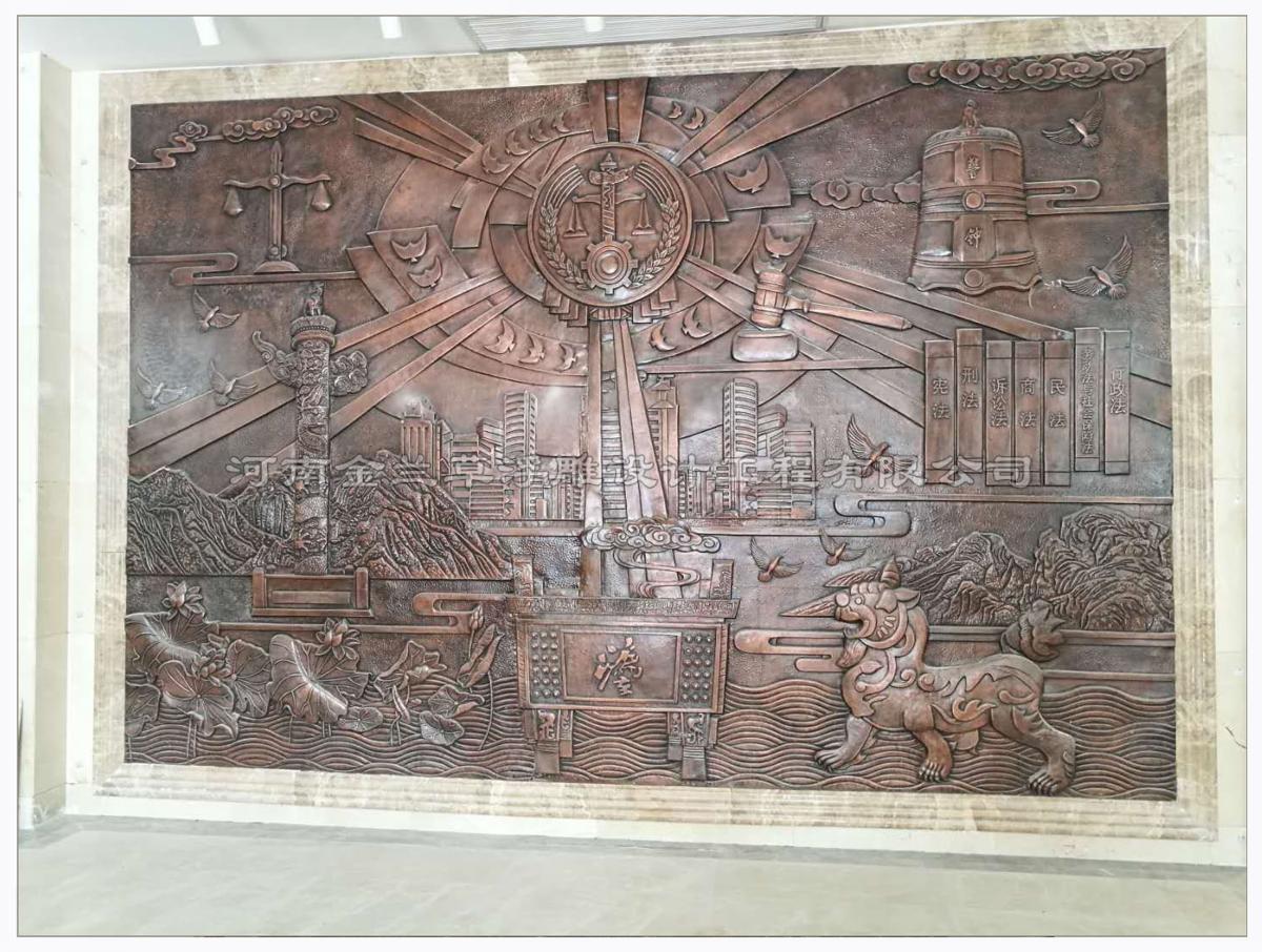 法院背景墻浮雕因為裝飾需求,大堂浮雕墻在法院背景墻浮雕的裝飾中運(yùn)用較多,浮雕質(zhì)感古樸典雅,大方美觀,